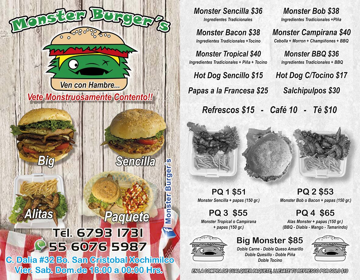 Monster Burger's is a hidden gem nestled in the heart of San Cristobal, CDMX. This cozy hamburger joint doubles as a coffee shop and restaurant, offering a flavorful escape for burger lovers and casual diners alike. The menu shines with juicy, well-crafted burgers that boast fresh ingredients and bold flavors, making each bite a memorable experience. Alongside the star burgers, their chicken wings stand out—crispy, perfectly seasoned, and truly “para chuparse los dedos” as one happy patron described. Although the spot is a bit tucked away, the warm and friendly service by the owners makes every visit feel special. The place thrives on simple, honest food that satisfies the palate without unnecessary complexity. While some note the need for a bit more staff, the quality of the dishes easily overshadows this. Whether you're seeking a hearty lunch or a relaxed dinner, Monster Burger's delivers a satisfying culinary adventure in Xochimilco.